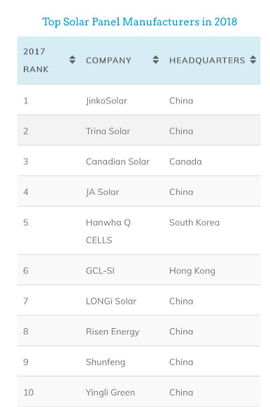 2018 年世界太陽能生產商排行榜, 晶澳太陽能板的平均性能按和發電效率現時世界排行第四